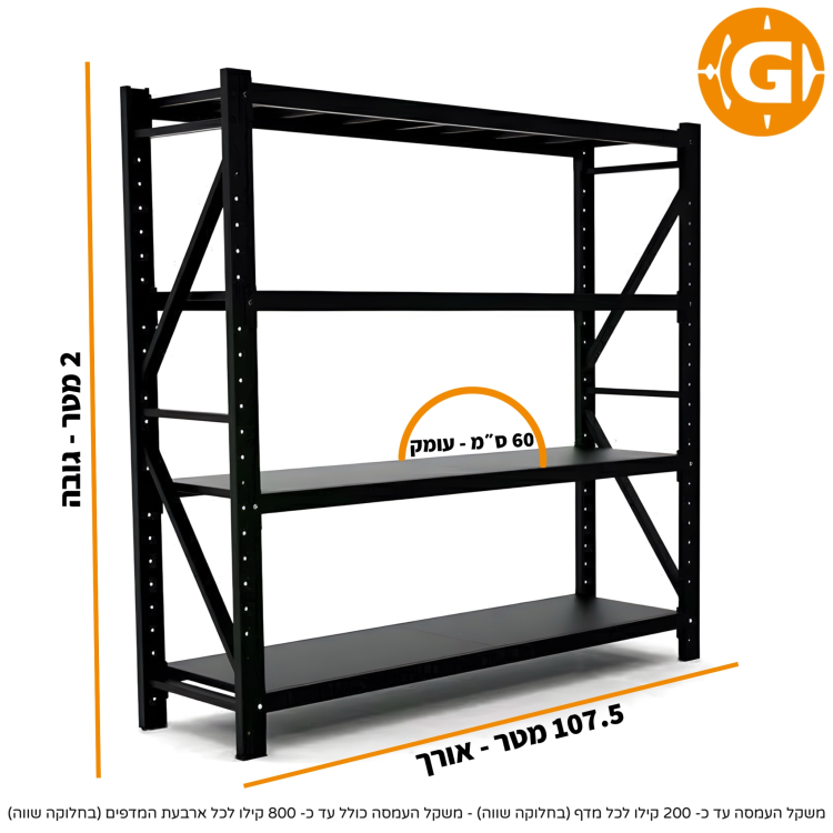 4 מדפים רחבים – נשיאת עומס גבוהה